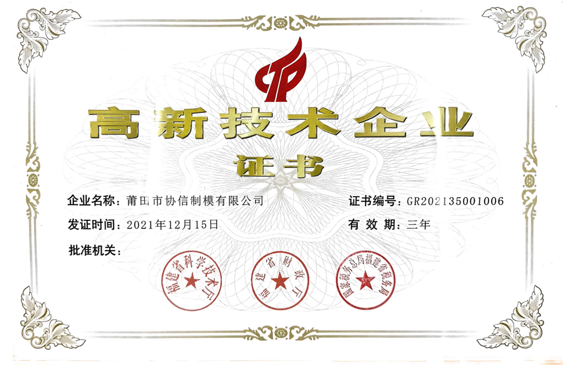 公司信譽度良好,2014年開始至今,連續多年獲得“納稅大戶”稱號。公司的管理和技術力量雄厚,榮獲了“福建省科技小巨人企業”、“科技型中小企業”、“市級企業技術中心”等稱號。2021年獲得“國家高新技術企業”認定,通過GB/T29490-2013《知識產權管理體系認證》。